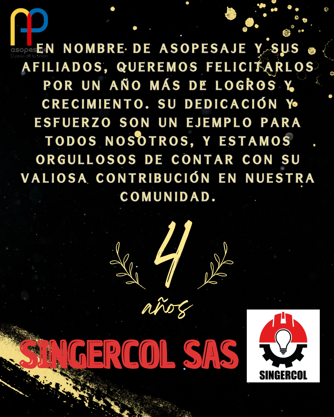 Singercol SAS ¡Celebramos con ustedes un año más de éxito empresarial!Singercol SAS, empresa ubicada...