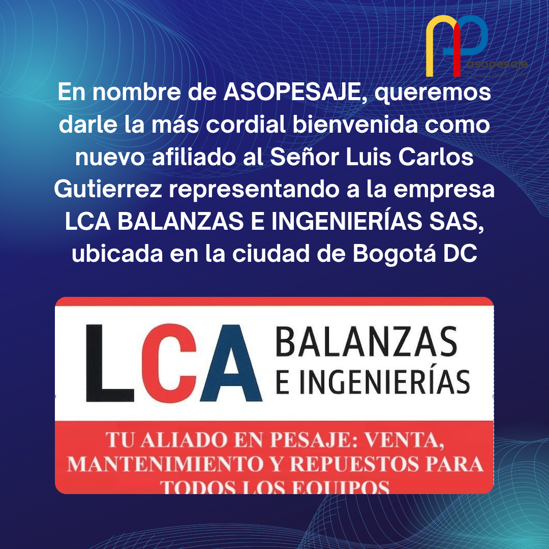 🎉Bienvenida nuevo asociado LCA BALANZAS E INGENIERÍAS...